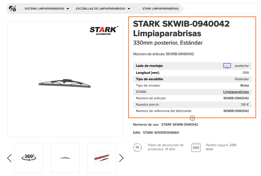 Las descripciones de productos mostradas en nuestra página web proceden del catálogo TecDoc. La descripción del producto es de extrema importancia a la hora de seleccionar un artículo. Ésta proporciona información acerca de las características del producto que son relevantes para la instalación y funcionamiento de la pieza.