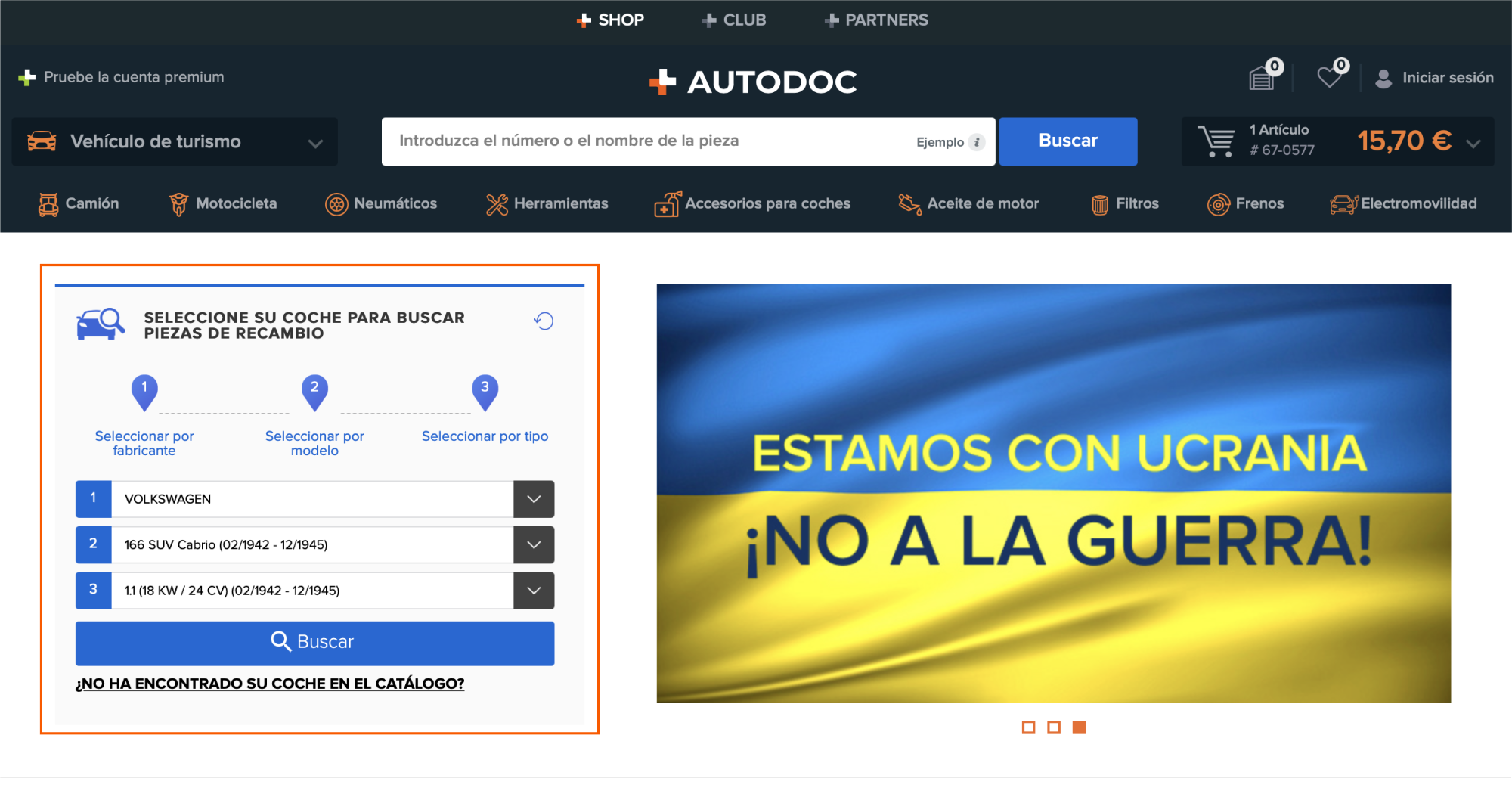 Después de haber introducido tu solicitud en la barra de búsqueda, serán mostrados los resultados de los productos pertinentes. Si no has introducido los datos de tu vehículo, puedes comprobar la compatibilidad de una pieza concreta con ese vehículo en cada página del producto.