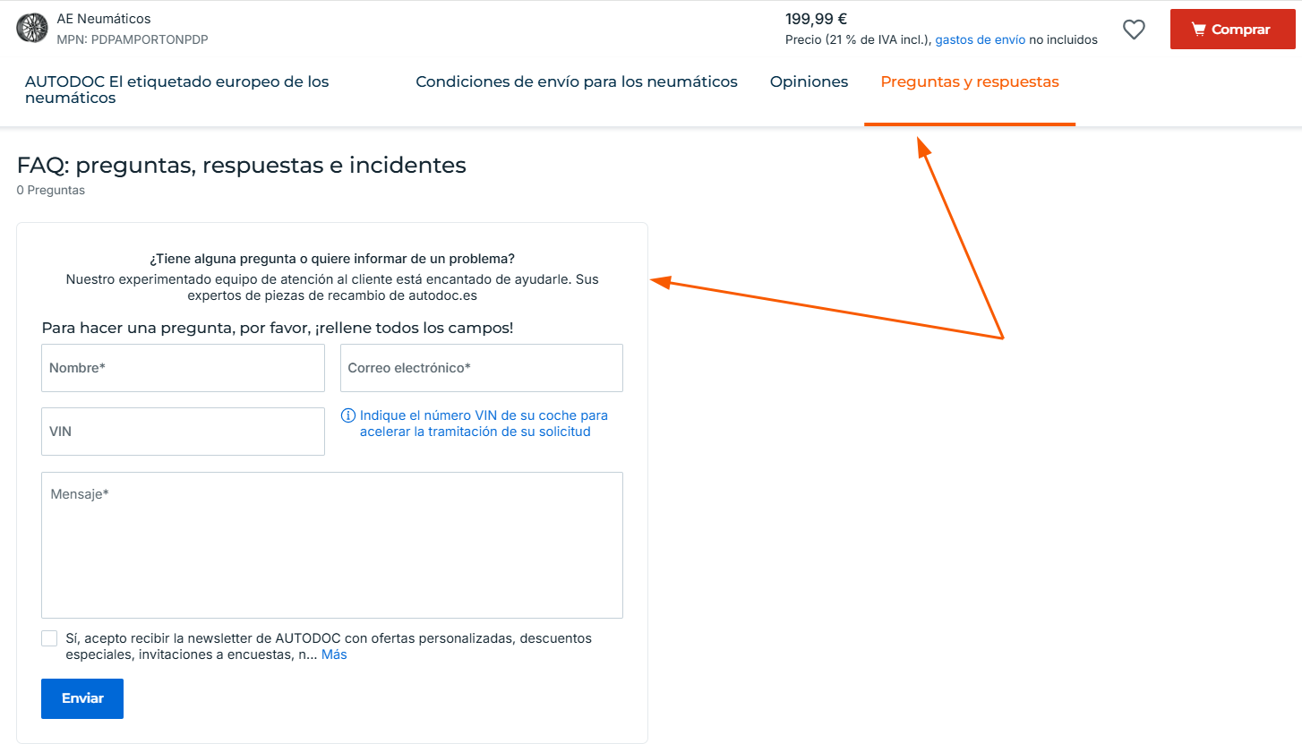 - Busca la etiqueta que aparece justo debajo del botón "Comprar", donde se indica quién vende el producto (AUTODOC o un vendedor de AUTODOC MARKETPLACE).