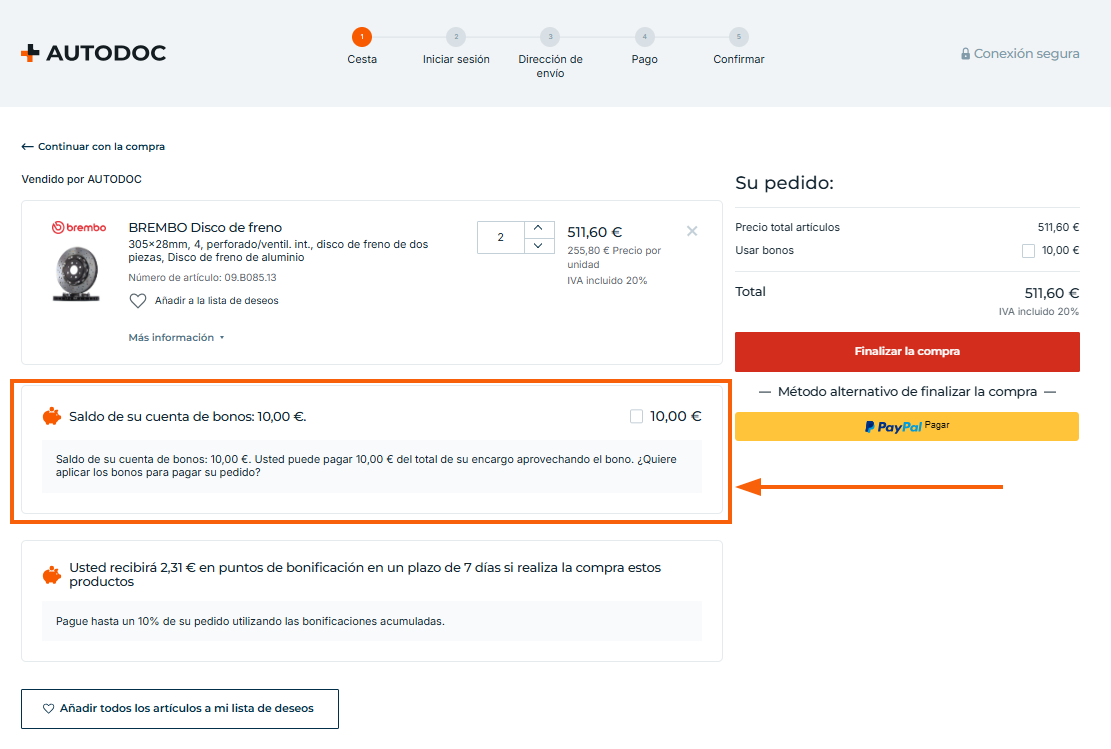 - cuando pagues una parte de un pedido con tu saldo de bonificaciones.